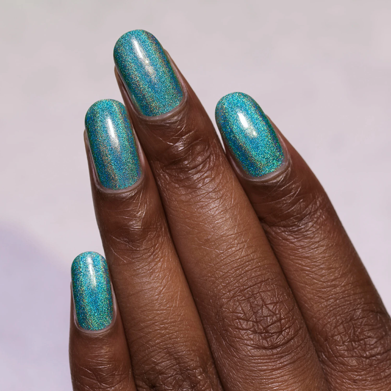 Aerial View is a refreshing aquamarine linear holographic nail polish with a beautifully delectable finish.