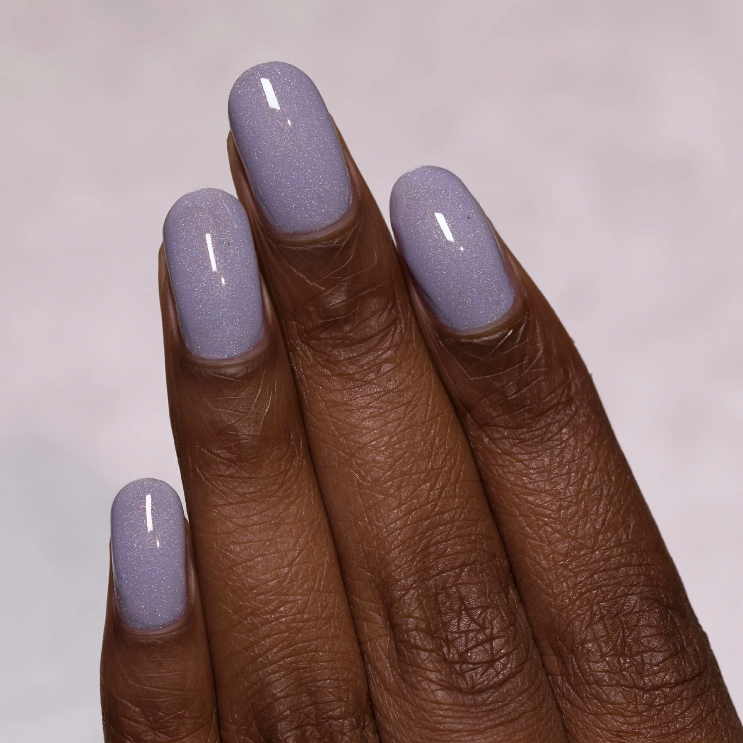 ASAP is a creamy soft periwinkle blue cooled down by a precise balance of holographic micro-flakes.