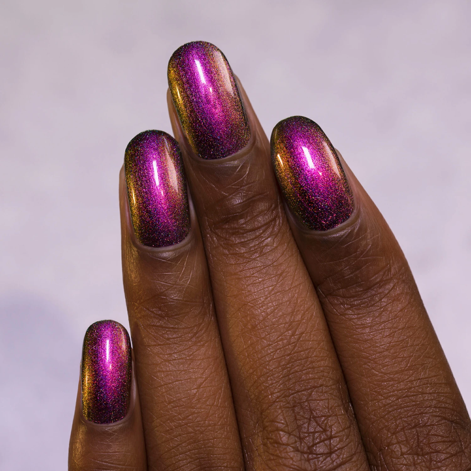 Cameo (H) is a holographic version of the original Cameo Ultra Chrome polish! The new Cameo (H) contains just the right amount of holographic splendor to add a beautiful rainbow sparkle to the polish. All without ruining the intense color shift effect!