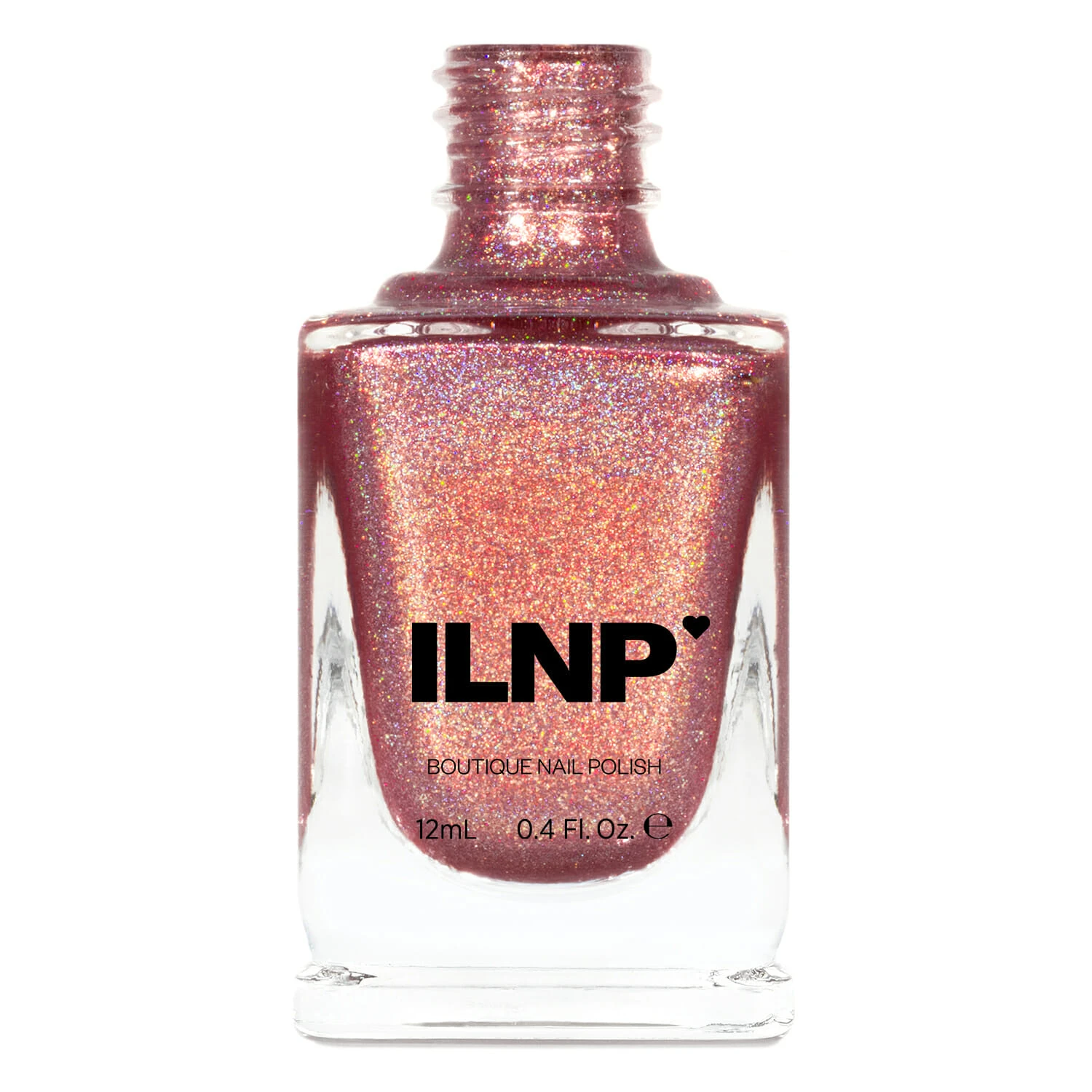 The lovely Champagne Blush is a sophisticated vintage pink holographic polish enveloped by a wonderfully crisp gold hue.
