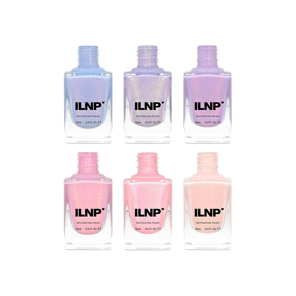 The Cloud Nine Collection is a medley of 6 shades inspired by a cloud-filled pastel sky fit for a fantasy. Made up of contrasting shimmers, most with a hint of holographic glimmer, each carefully chosen color-shifting sparkle adds the perfect finishing touch to these serene shades!