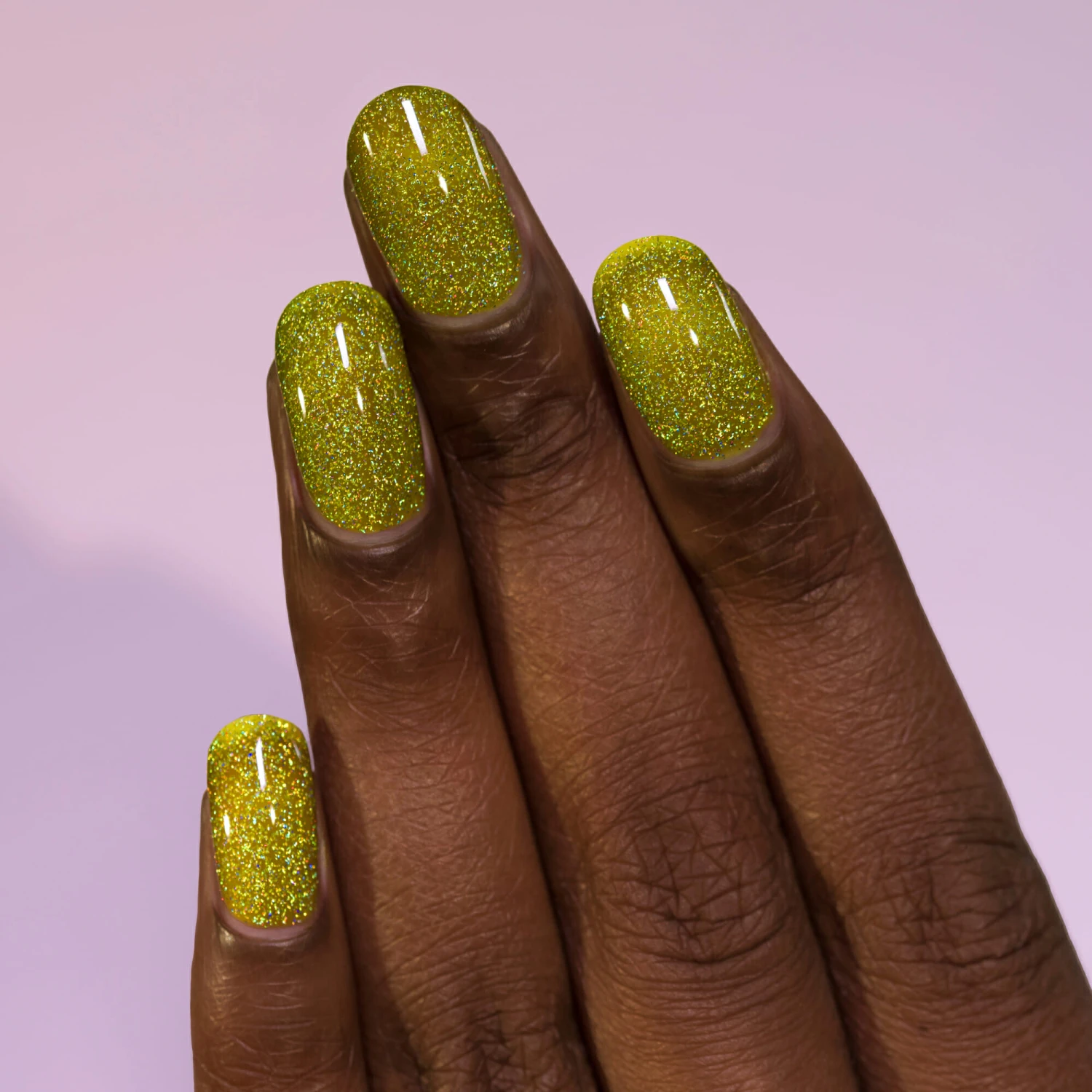 Clover is an enchanting chartreuse-leaning jelly that embodies the lively energy of the whimsical woodlands. Reminiscent of the dappled sunlight that filters through tall trees, a precise ratio of scattered holographic flakes stand out within the unique pear base, creating a mesmerizing sparkle that effortlessly builds with each layer.