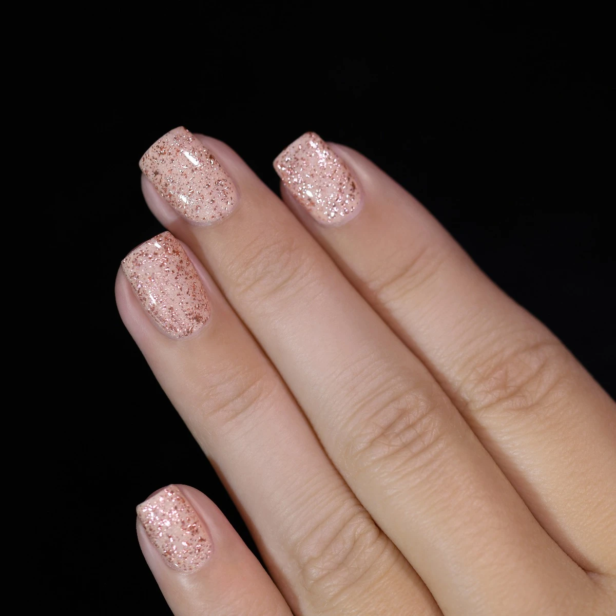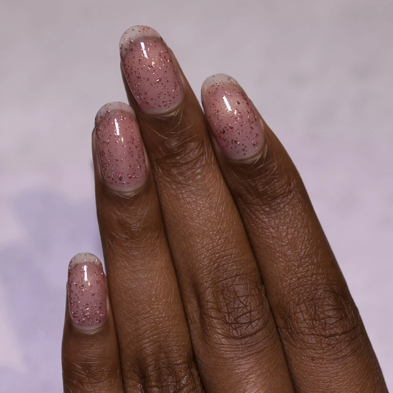Seated in a clear base, Empress adds a glistening pop of rosy-tinged flakes ranging in size to any base color you layer her over!