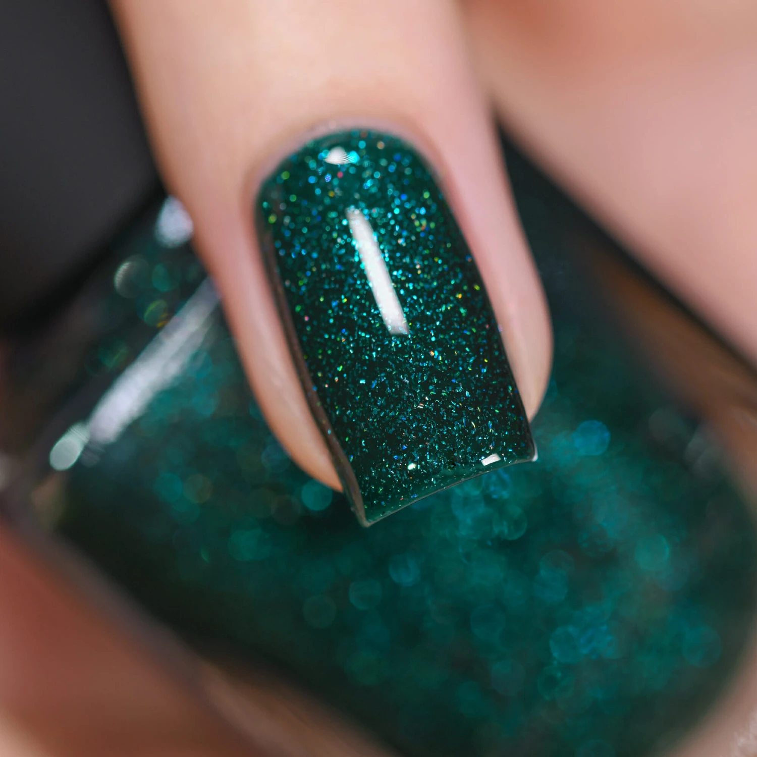 Fir Coat is a wonderfully festive and sultry emerald green holographic nail polish precisely formulated for maximum depth. Just the right color for the season, yet effortlessly appropriate any time of the year!