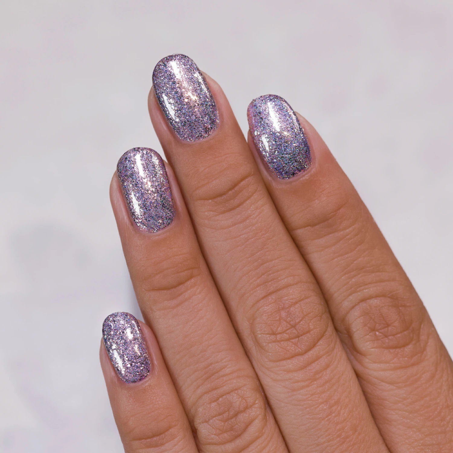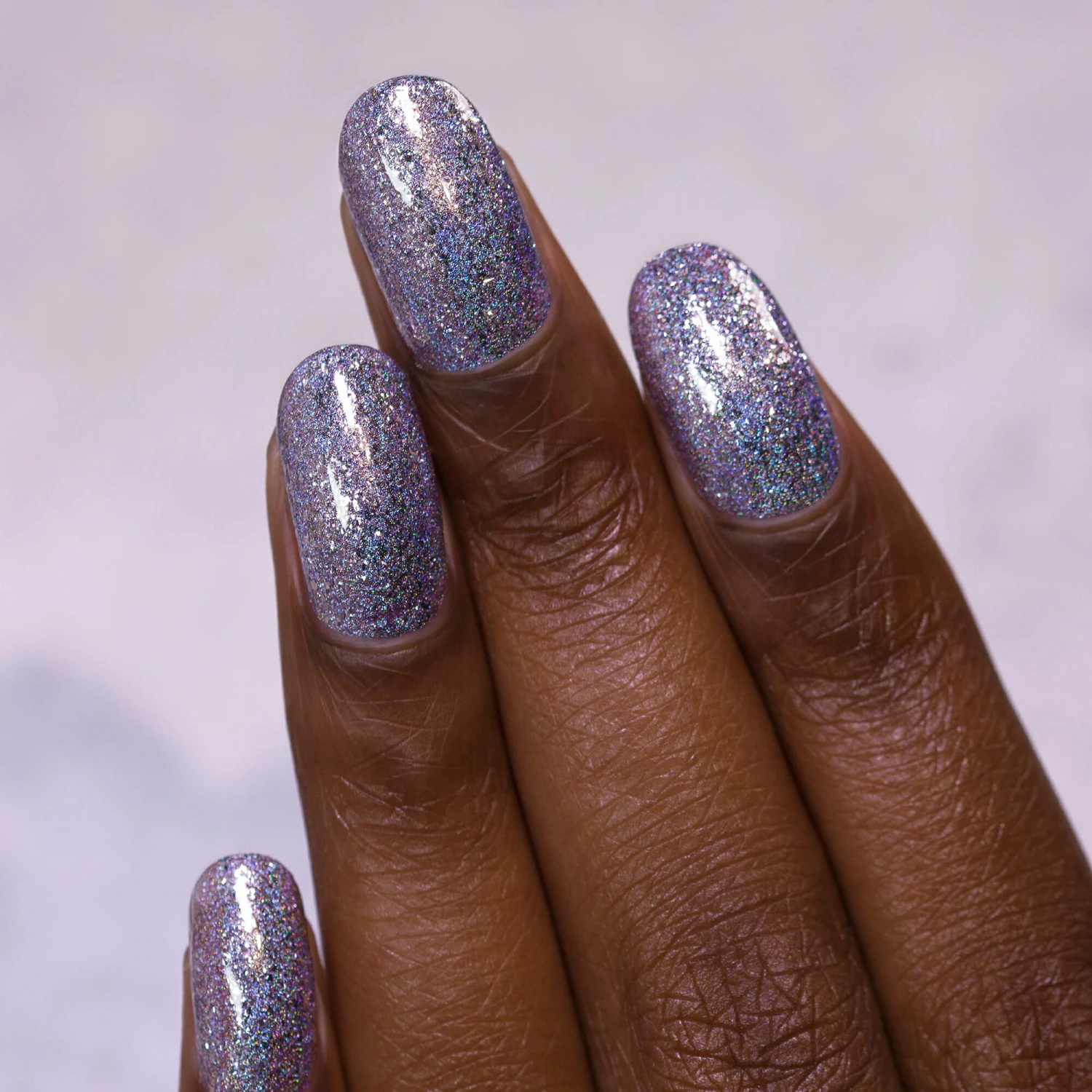 Happily Ever After is a soft and rich shade of lilac carefully paired with the perfect amount of silver flakes and breathtakingly intense holographic pigment. Indoors, Happily Ever After is dainty, sweet, and super feminine. Step outside into the sun and you’ll be stunned at the extra vivid holographic rainbow sparkle parading all over your fingertips.