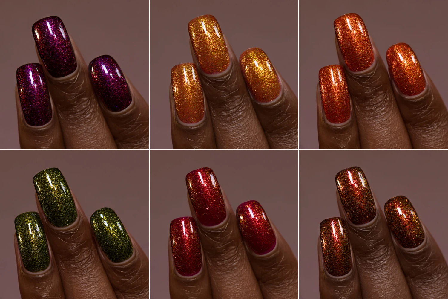 The Harvest Collection is a 6-piece selection of sparkling shades inspired by the rich and warm hues of falling leaves, the comfort of knit sweaters, and the joyful spirit of fall festivities. Classic and warm, Harvest perfectly embodies the signature cozy feeling that accompanies the arrival of the fall season.