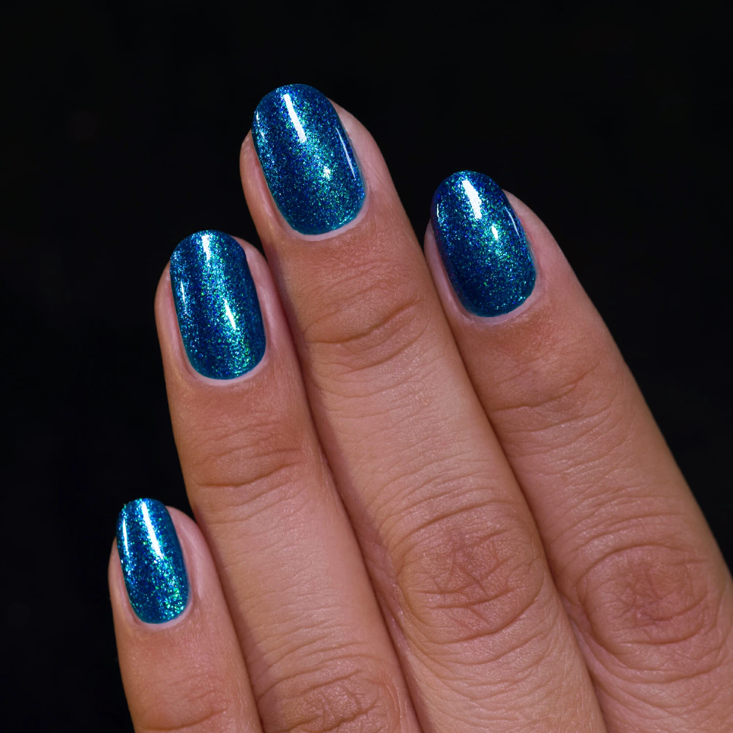 Invite Only is a bold teal shimmer nail polish.