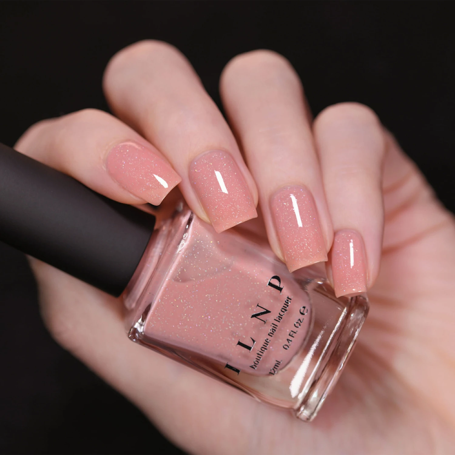 Playful yet subdued, a perfect ratio of holographic glimmer stands out from within Knitted’s creamy pink base. This delicate pink, inspired by the coziness of your favorite warm winter blanket, will get you in the mood for a relaxing weekend at the lodge!