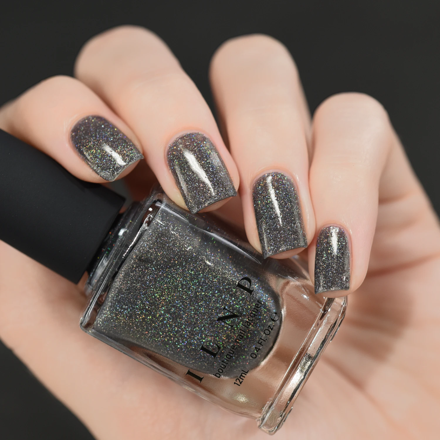 La Catedral is a stunning soft charcoal grey polish with a luxurious finish. Laced with an assortment of holographic pigments, La Catedral is nothing short of spectacular in the sun!