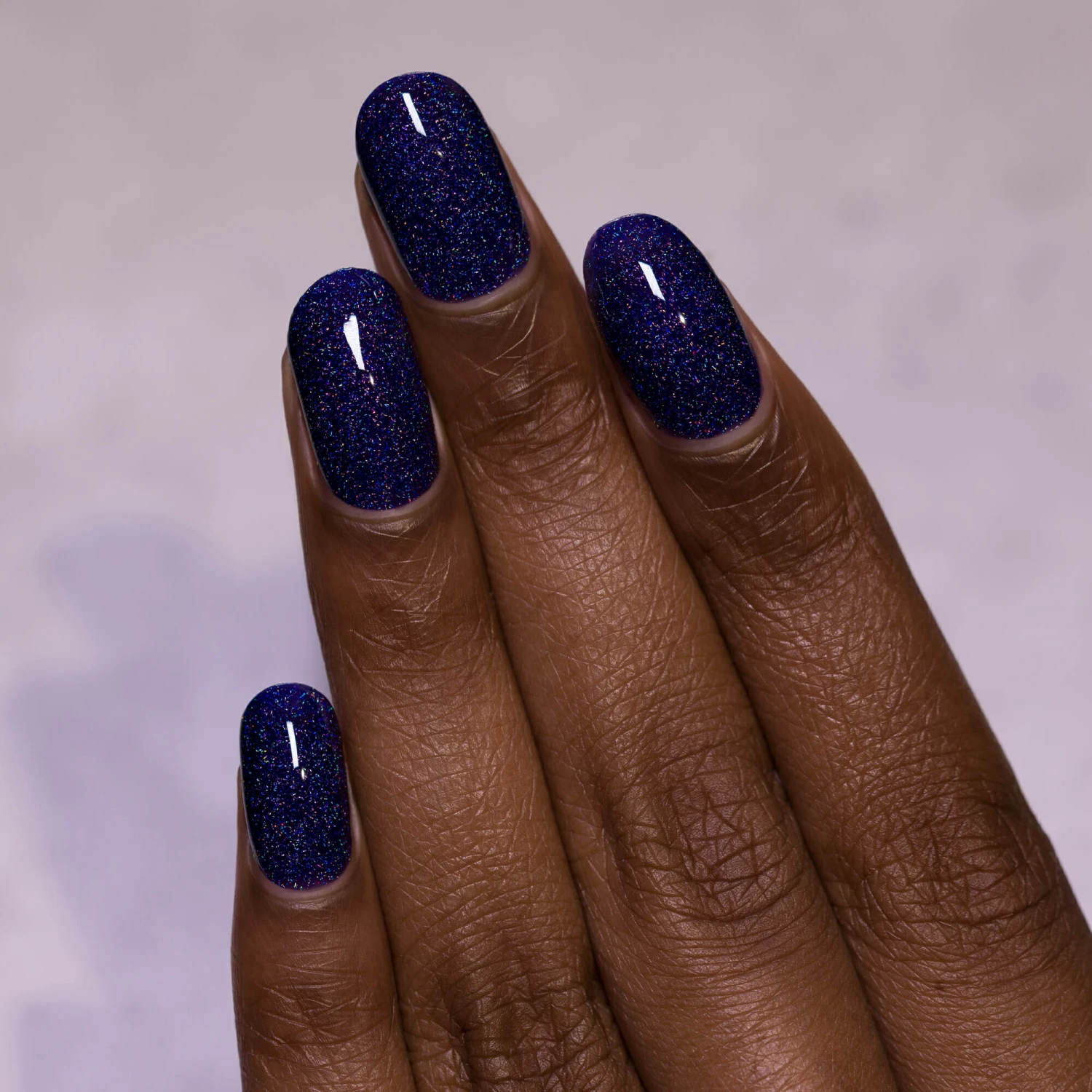 Lulu is a delicious deep grape holographic nail polish with strong blue undertones.