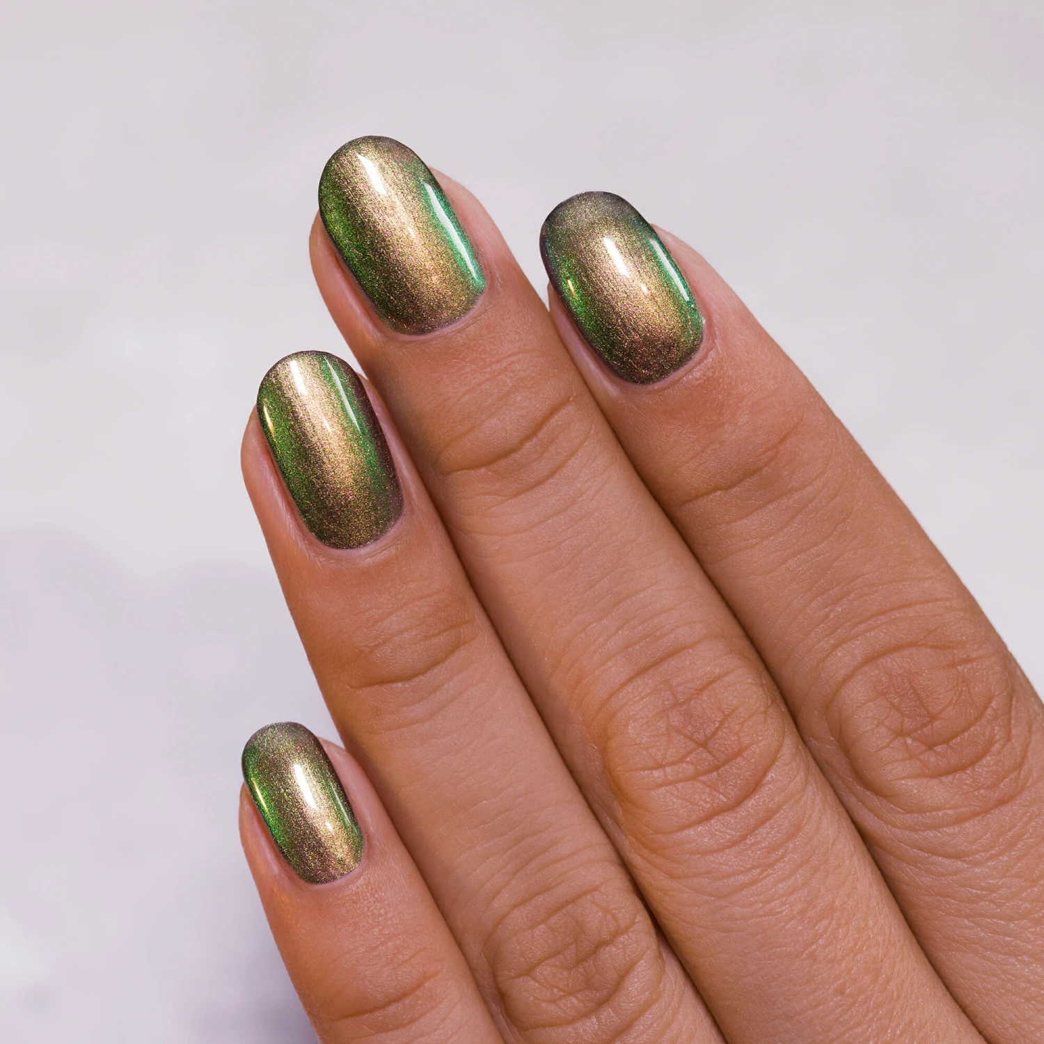 Mutagen is a wonderful mirror-like chrome nail polish that seamlessly cascades through green, blue, red, and orange; all depending on the angle of your fingertips!
