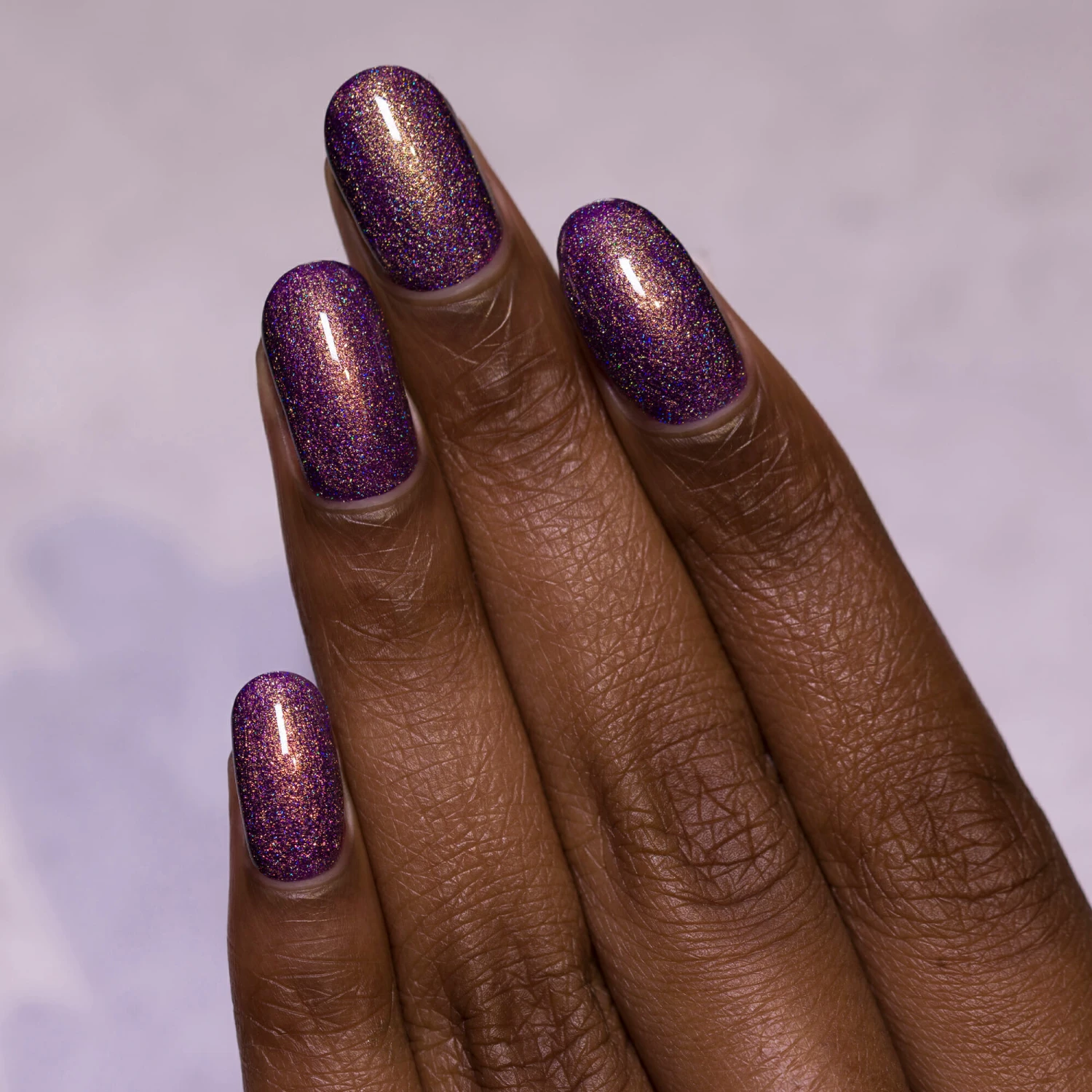 Off The Grid is a stunning Byzantium purple based nail polish set ablaze with a dazzling yellow-gold sparkle!