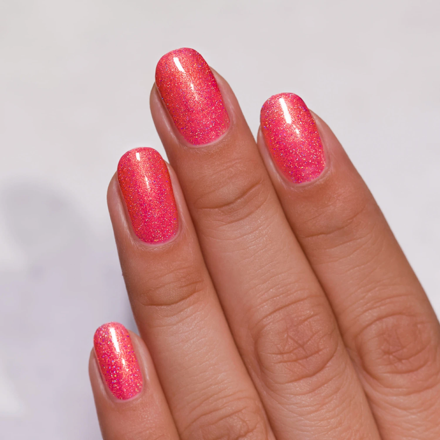 This jaw-dropping hue features a stunning orange-coral base loaded with intense gold sparkle! The intensity doesn’t stop there, On Location showcases the perfect amount of holographic splendor for a stunning radiance that never stops!