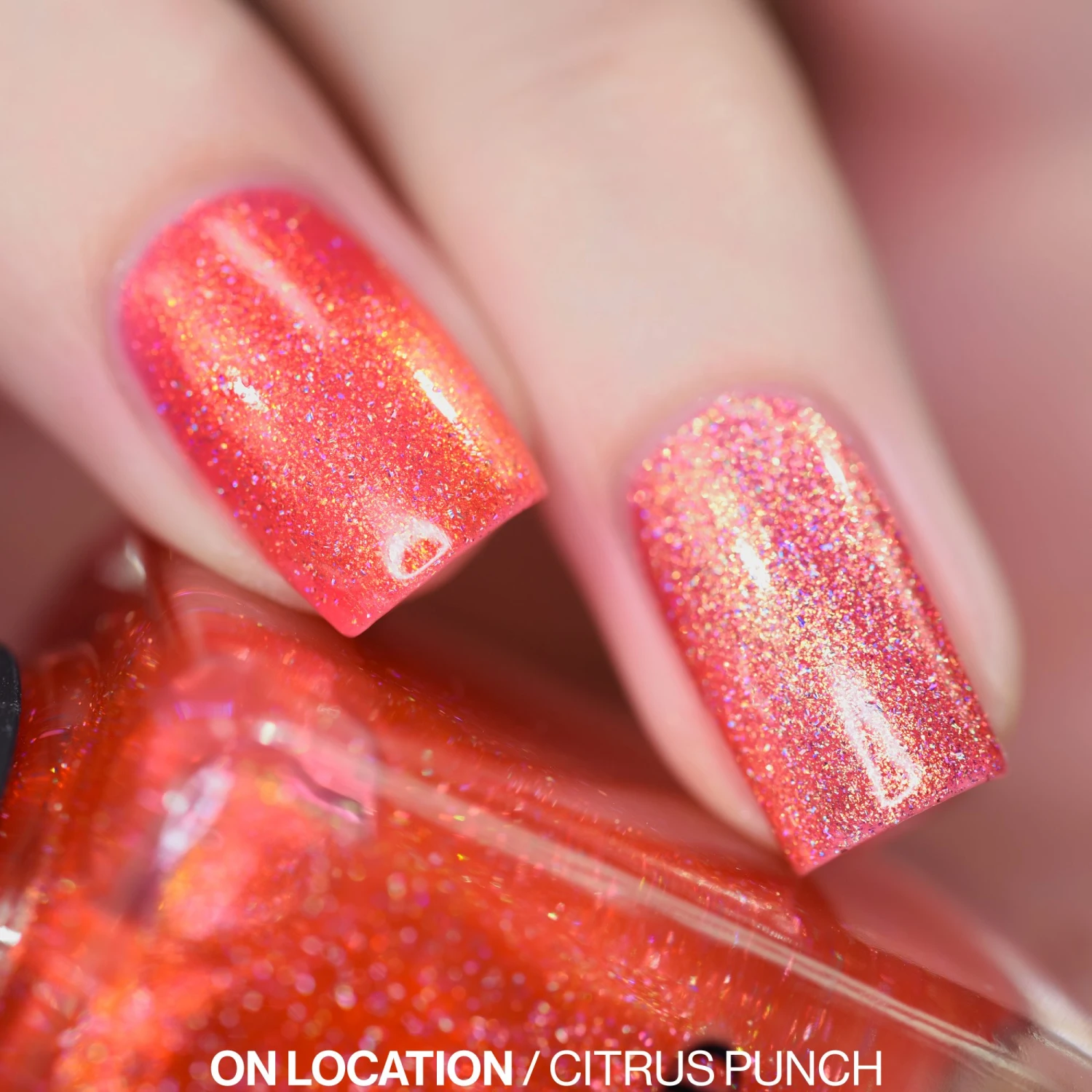 On Location is a fiery orange-coral holographic that is sure to wow!