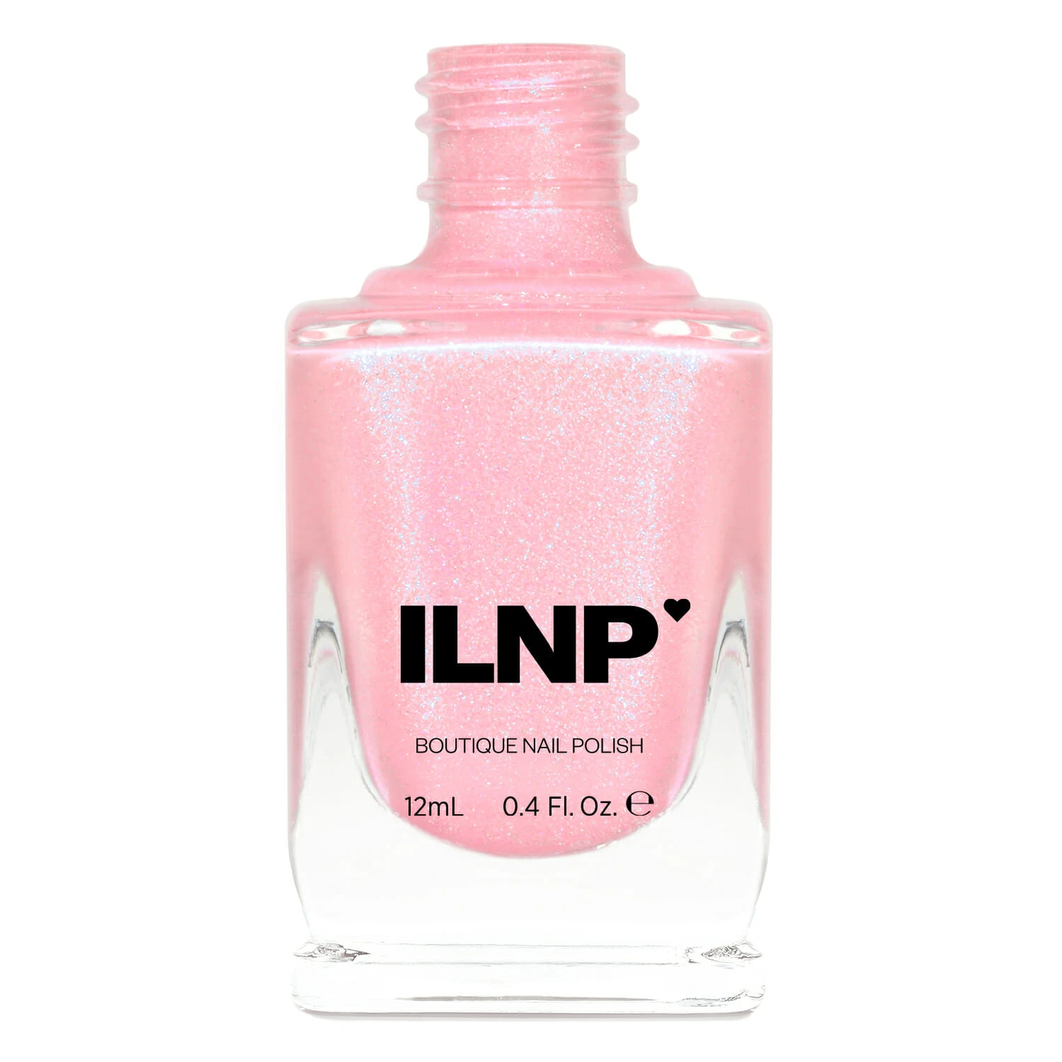 Open Skies is a creamy pink nail polish with a strong iridescent teal shimmer.