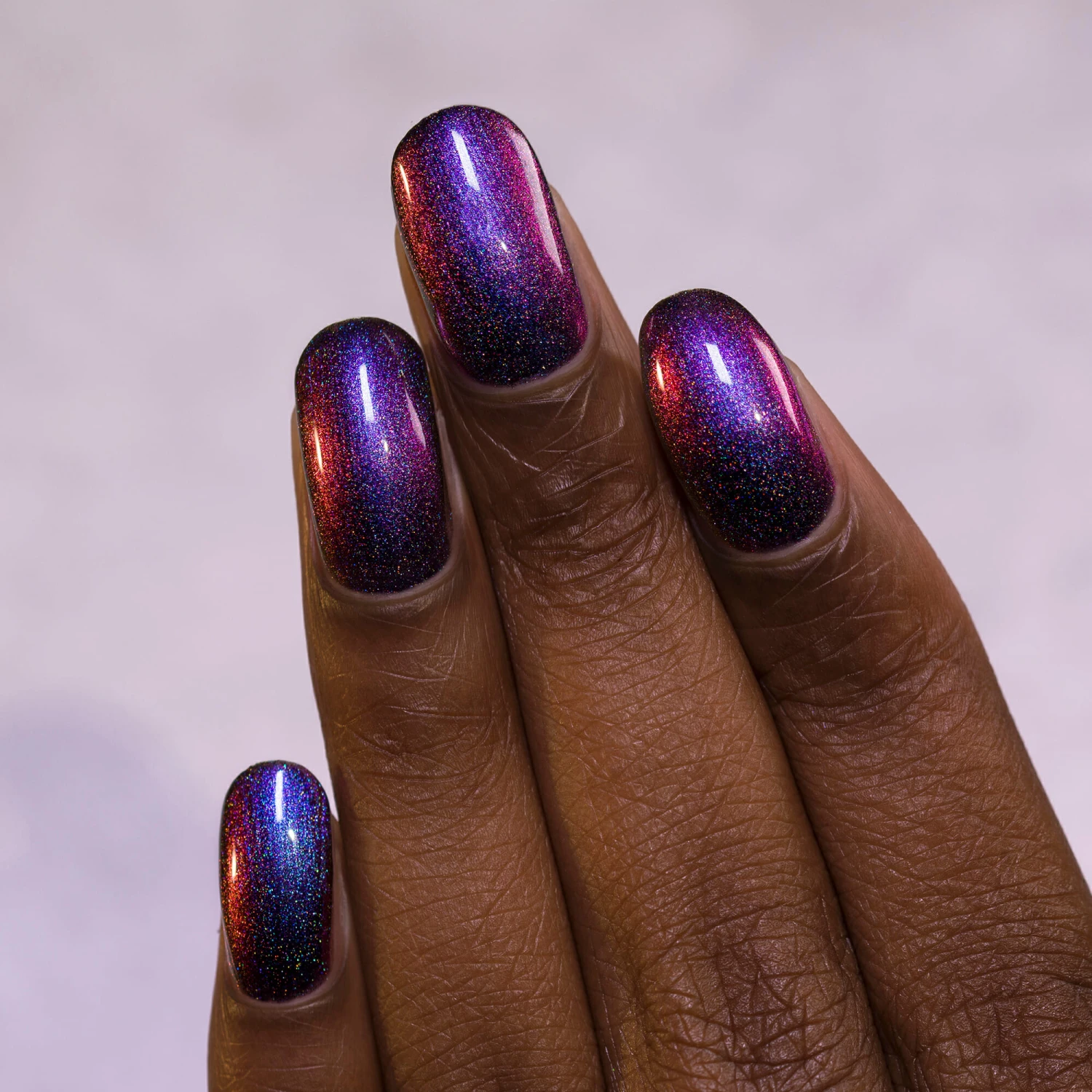 Depending on the light and angle of your fingertips, Peace (H) will magically shift through vivid hues of blue, purple, fuchsia, pink, and even a subtle coppery gold.