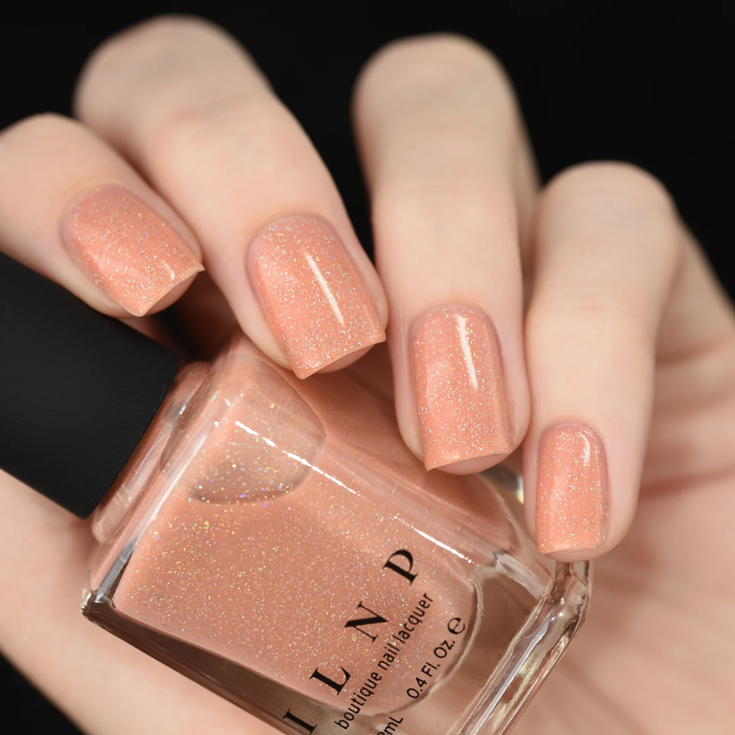Peachy Queen is a delightfully sheer polish with a soft peach hue, stuffed with an array of holographic pigments for a stunning holographic sparkle! Peachy Queen is also perfectly accented with just the right amount micro gold flakes for a luxurious twist that really sets this shade apart from the rest! A wonderful accent for a day in the sun!