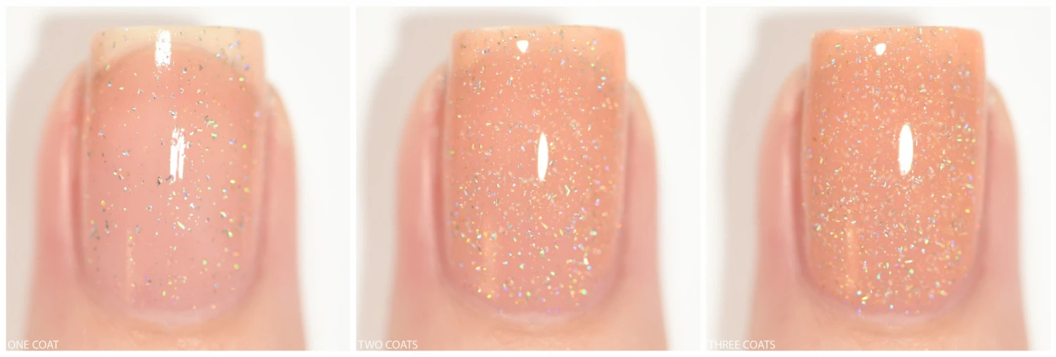 Easily built up or sandwiched, the sheer formula of our jellies make way for our scattered holographic micro-flakes to work their magic all the way through each layer right down to your nails! The end result is a super crisp and sparkly finish with unmistakable depth.