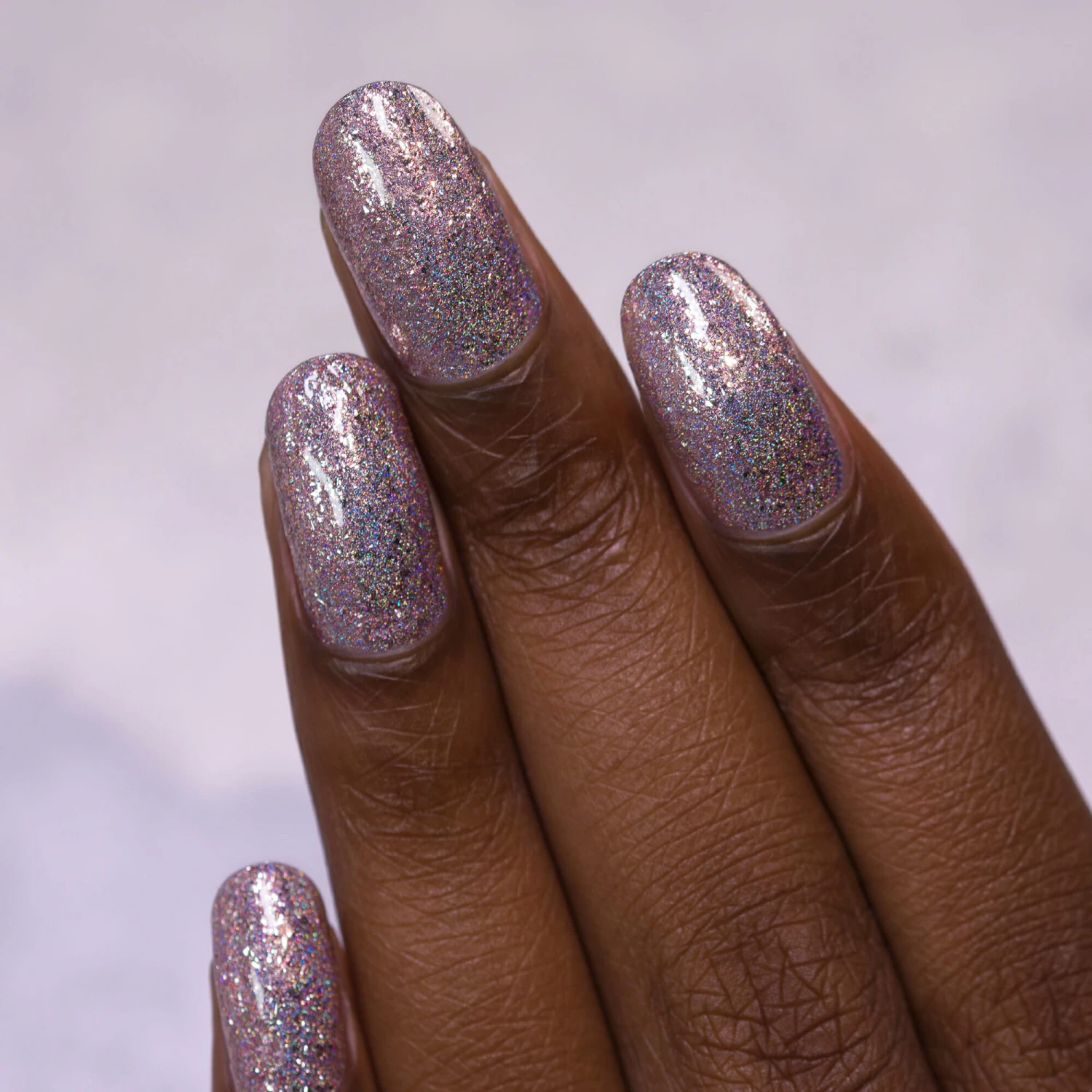 Pink Mimosa is a super feminine rose toned nail polish packed with bright silver flakes, vivid pink shimmer, and an incredible holographic sparkle.