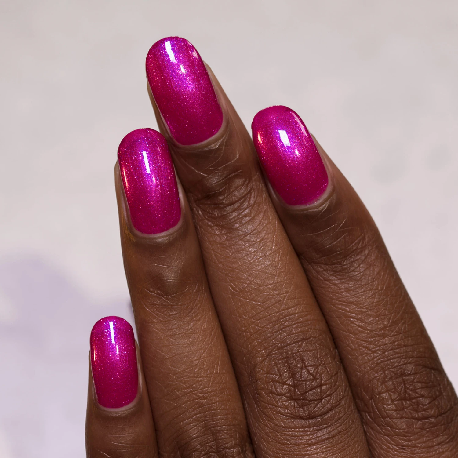 With help from a subtle accent of blue and violet shimmers, Pucker Up gives off beautiful purple leaning hues at certain angles. The overall finish of Pucker Up is so very crisp and ultra-saturated that you’ll want to eat it up!