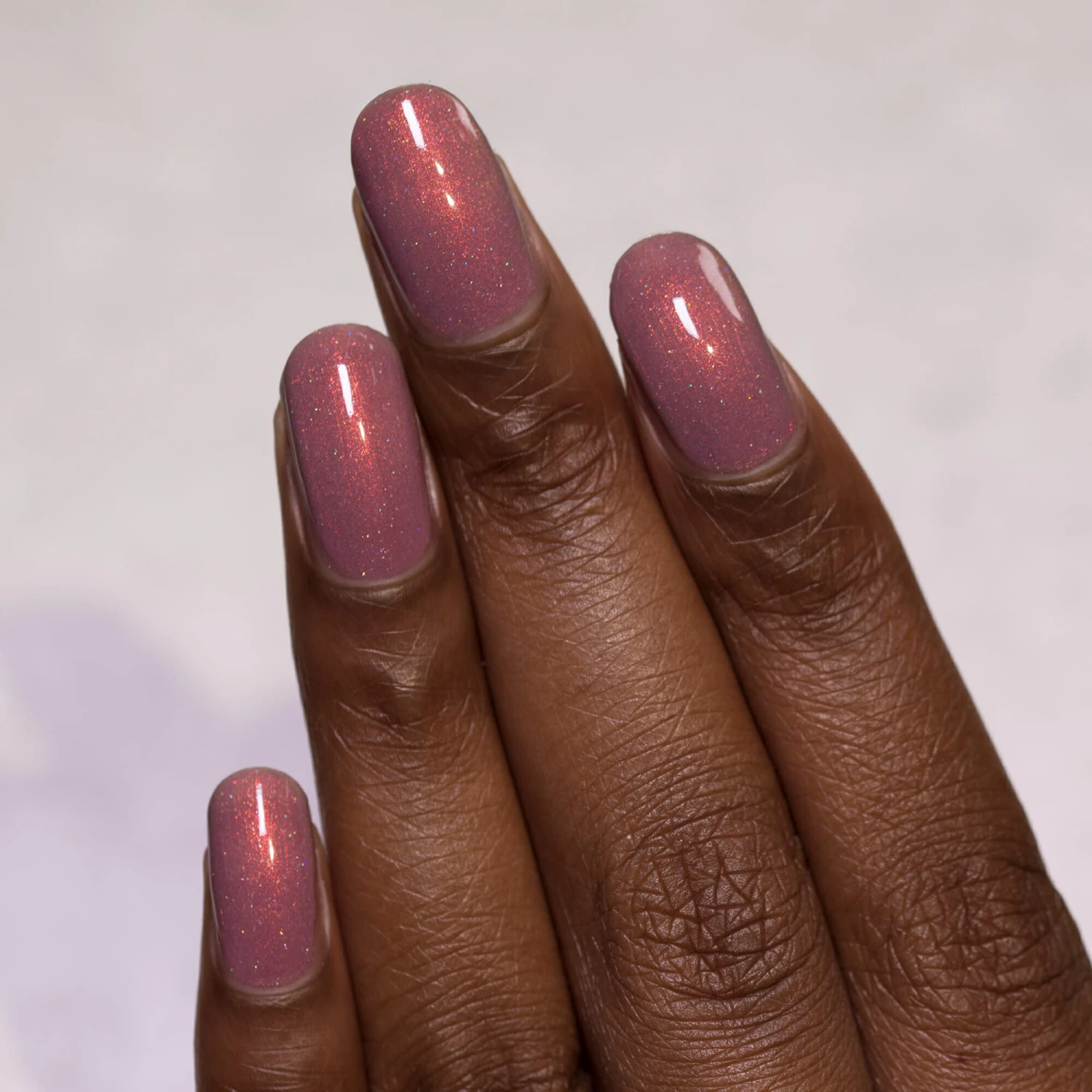 Sink into a beautiful balance of gold, orange and red as the color shifting red to gold shimmer and subtle holographic sparkle radiate through to reveal a lovely and delicate dimensional finish.