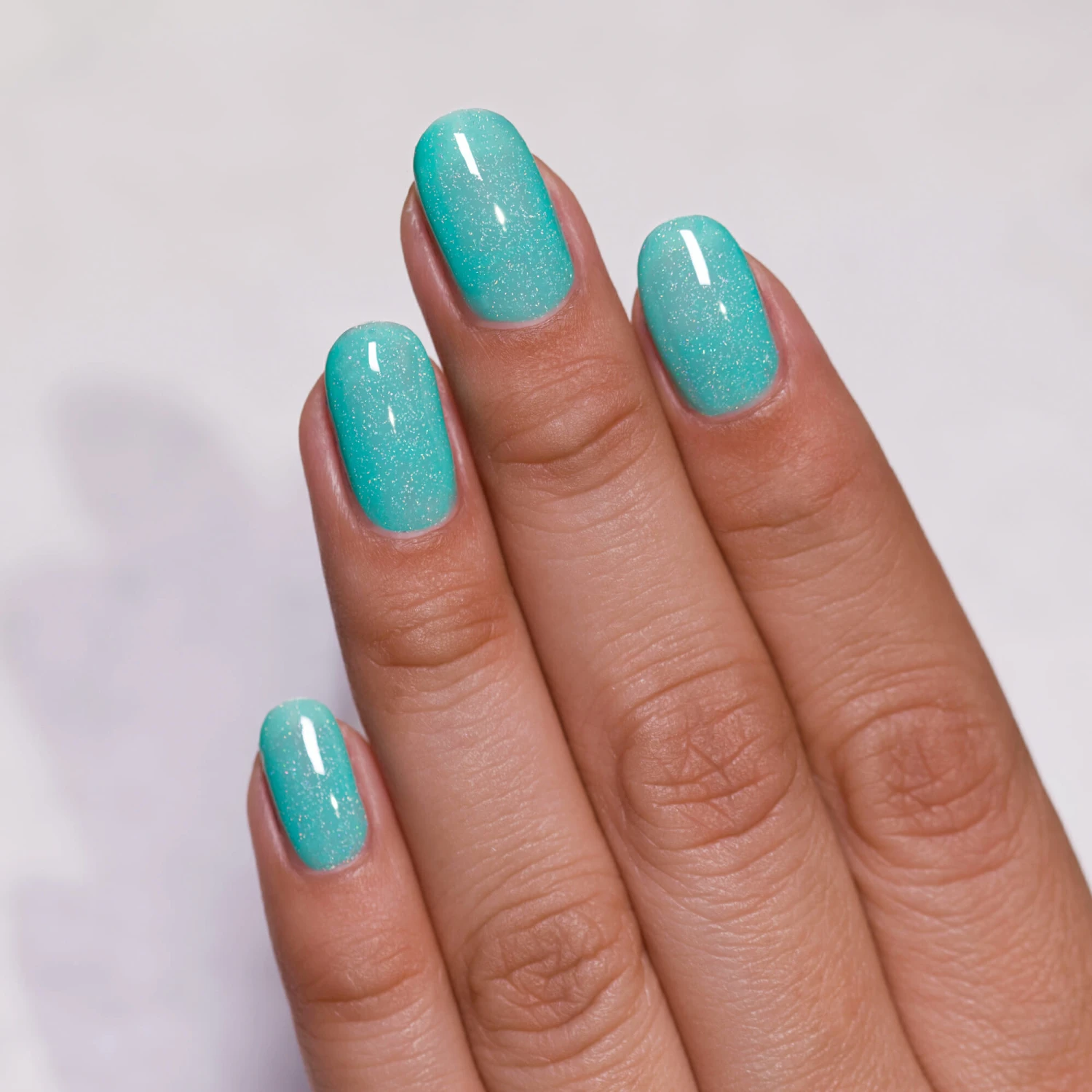 Woah! Riding Waves is a stunningly vivid mint nail polish that is sure to deliver! Holographic micro-flakes pair beautifully with this bright teal base for a finish that radiates fun!