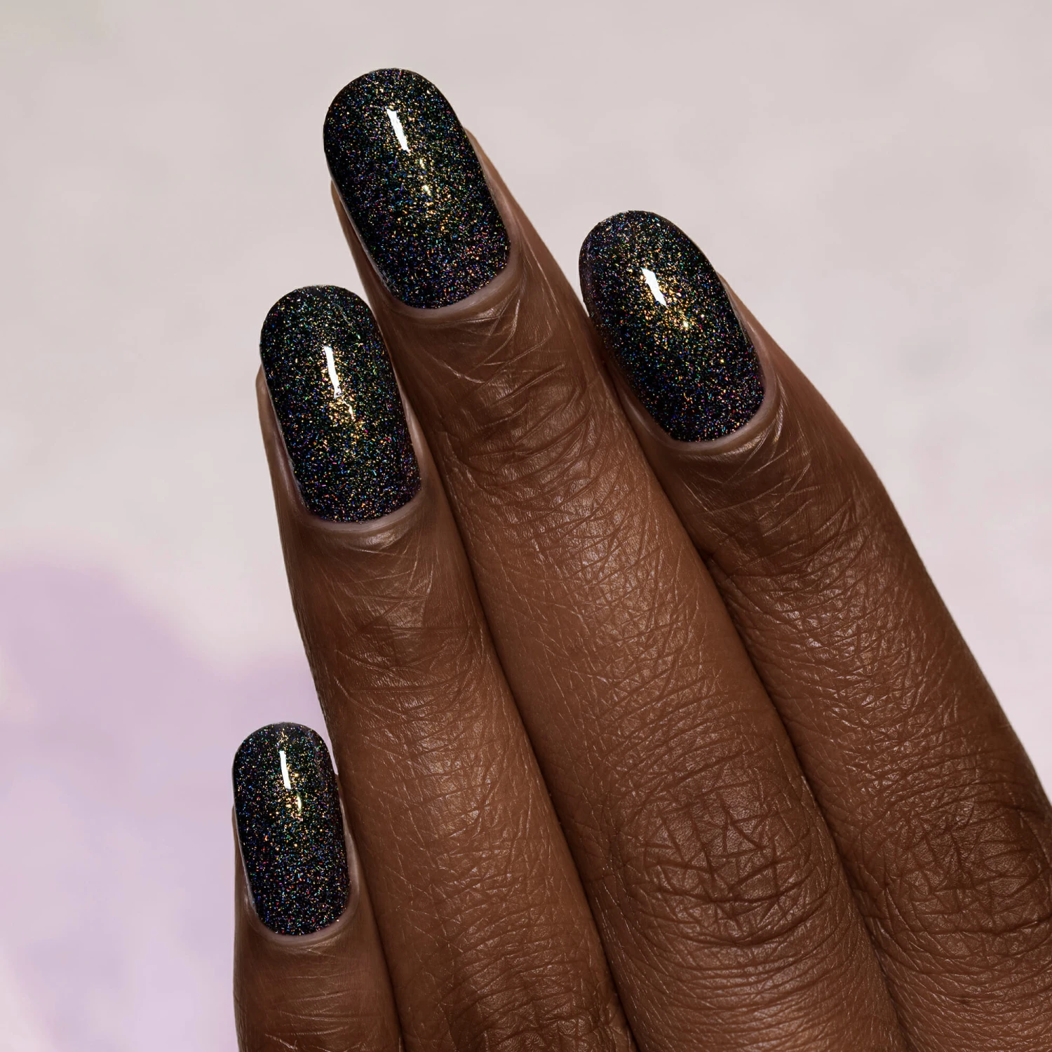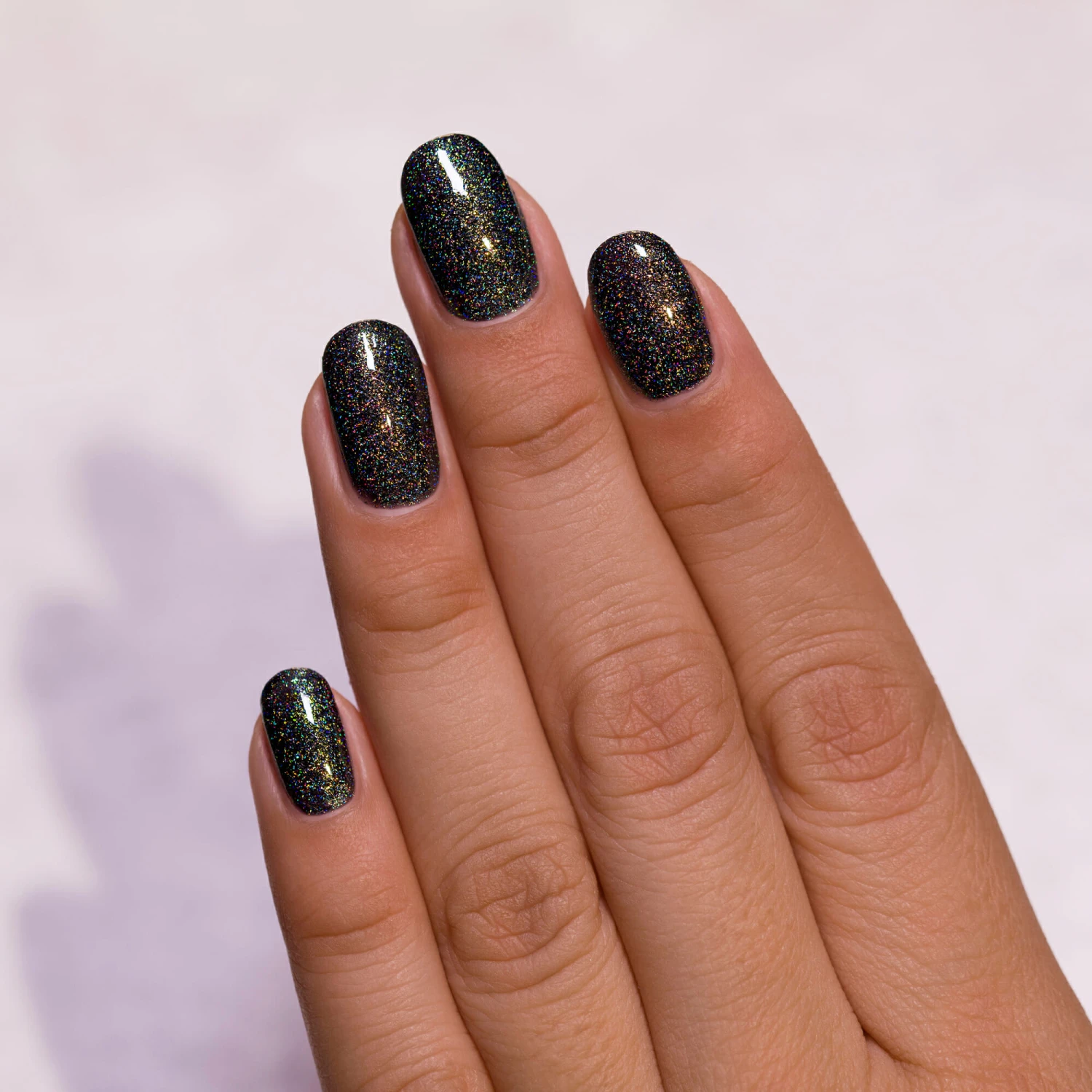 Riot is part of the new Color Kissed Ultra Holos After Dark line. These shades showcase a stunningly vibrant color shifting sparkle with an incredibly holographic finish in a rich black base for a “kiss” of color that pops at every turn!