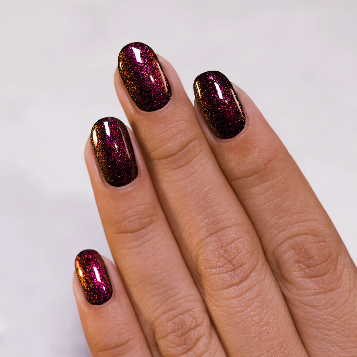 Scarlet is part of ILNP’s new Real Magic™ class of incredibly vivid nail polish toppers. Our Real Magic™ toppers are stunningly vibrant and practically glow in any light. All Real Magic™ toppers are precisely formulated for maximum effect payoff, uniform particle distribution, and extreme versatility.