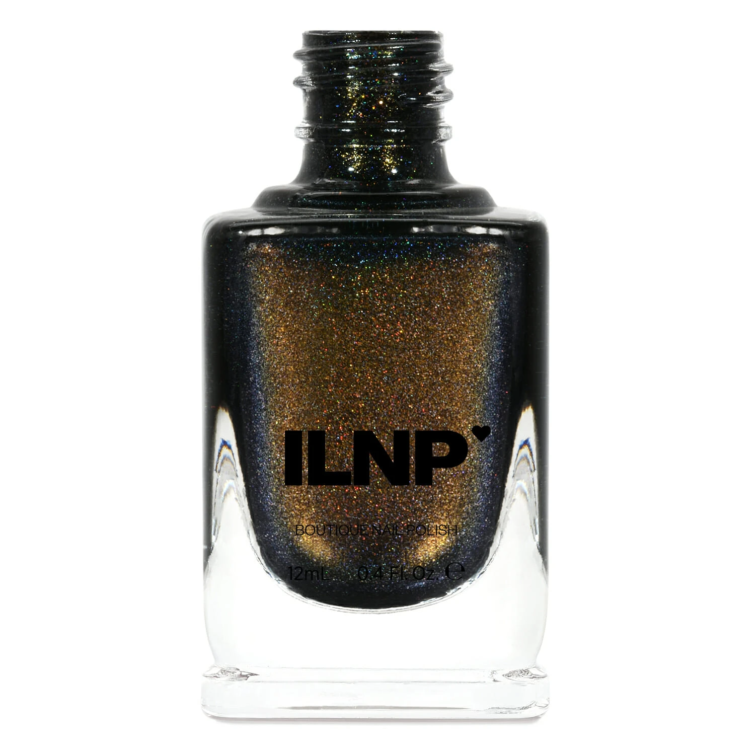 Rooted in a hauntingly deep black base, linear holographic pigment intertwines with color-shifting green-to-gold shimmer. Echoing the mysterious depths of a midnight forest, every brush of Shadow Grove builds a genuinely intense and bold shimmering finish.