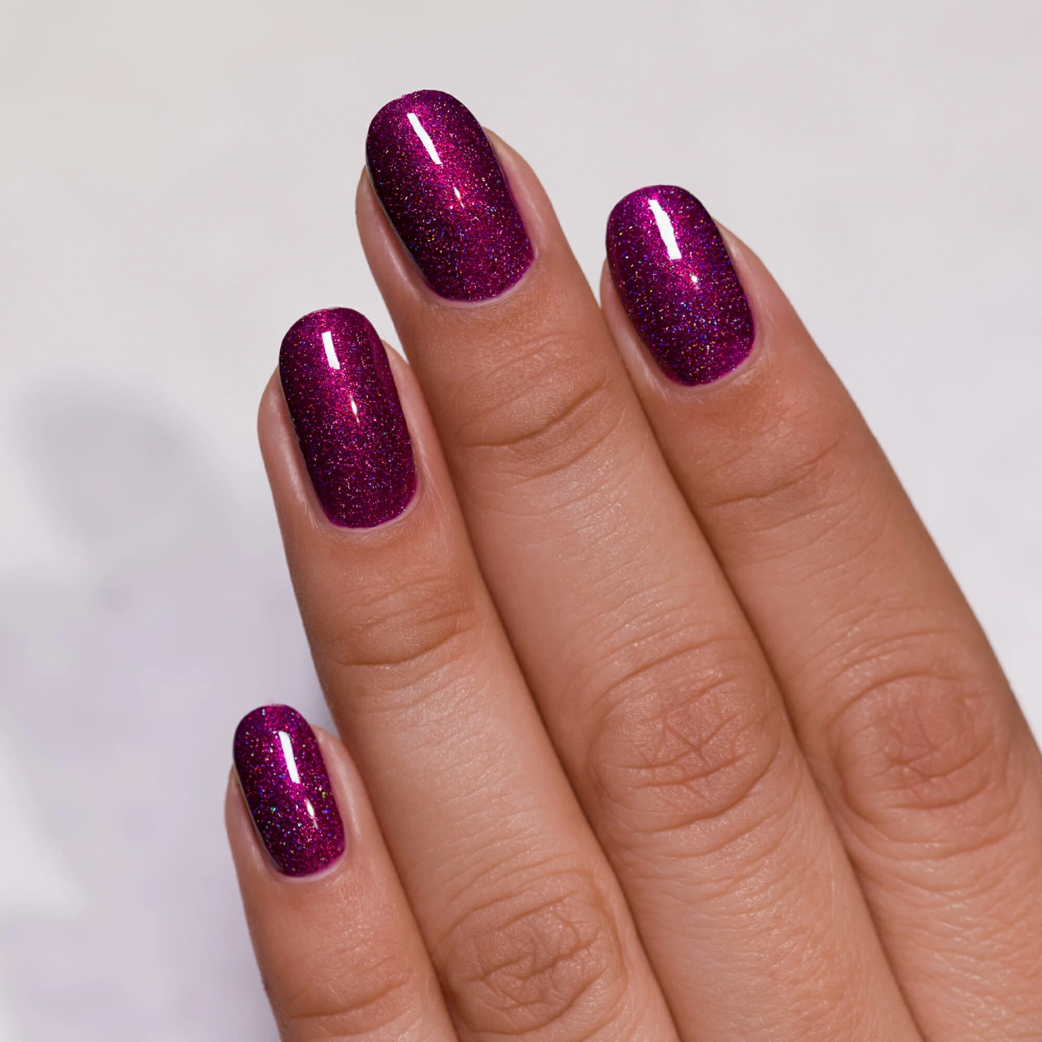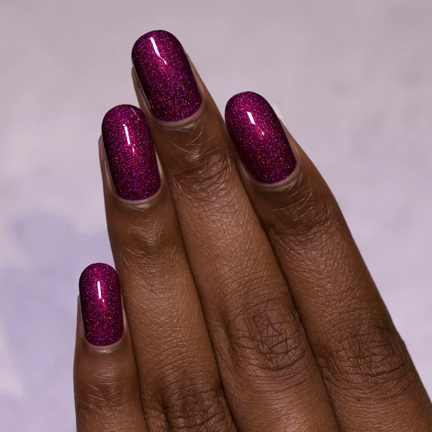 Showtime is a lavishly rich holographic nail polish with a deliciously deep and raspberry finish.