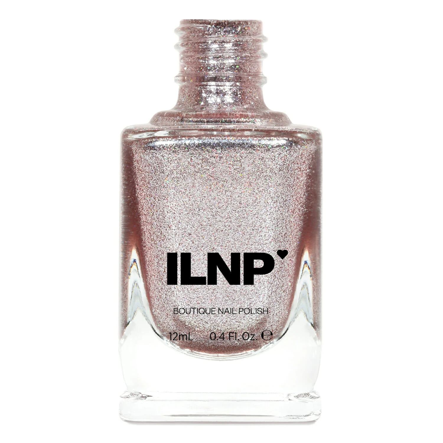 Create pure magic with Sleigh Bells, a shimmering metallic beauty that is sure to light up any holiday splendor! Lively holographic micro-flakes ring throughout layers of reflective silver pigments, leaving a standout finish of sparkling brilliance! The crisp and clean light champagne shade of Sleigh Bells looks miraculous in the sunlight, as it does indoors.