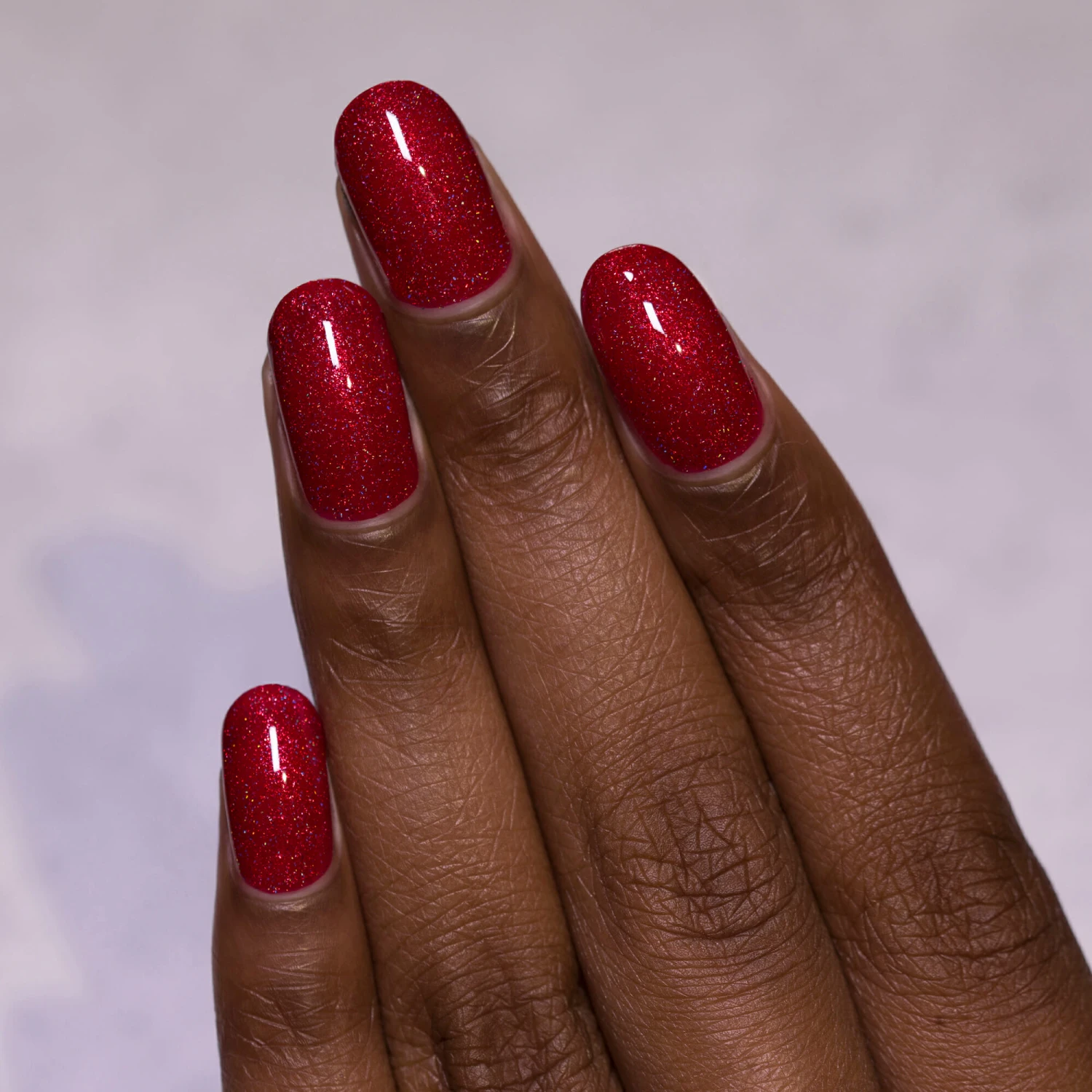 Stopping Traffic the stunningly bold and beautiful fire-engine red holographic nail polish that you’ve been waiting for!
