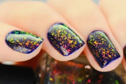 Supernova is truly a magical nail polish. The extreme color shift in Supernova travels through blue, teal, green, and violet. Expect to catch flashes of other colors depending on your lighting. A guaranteed stunner!