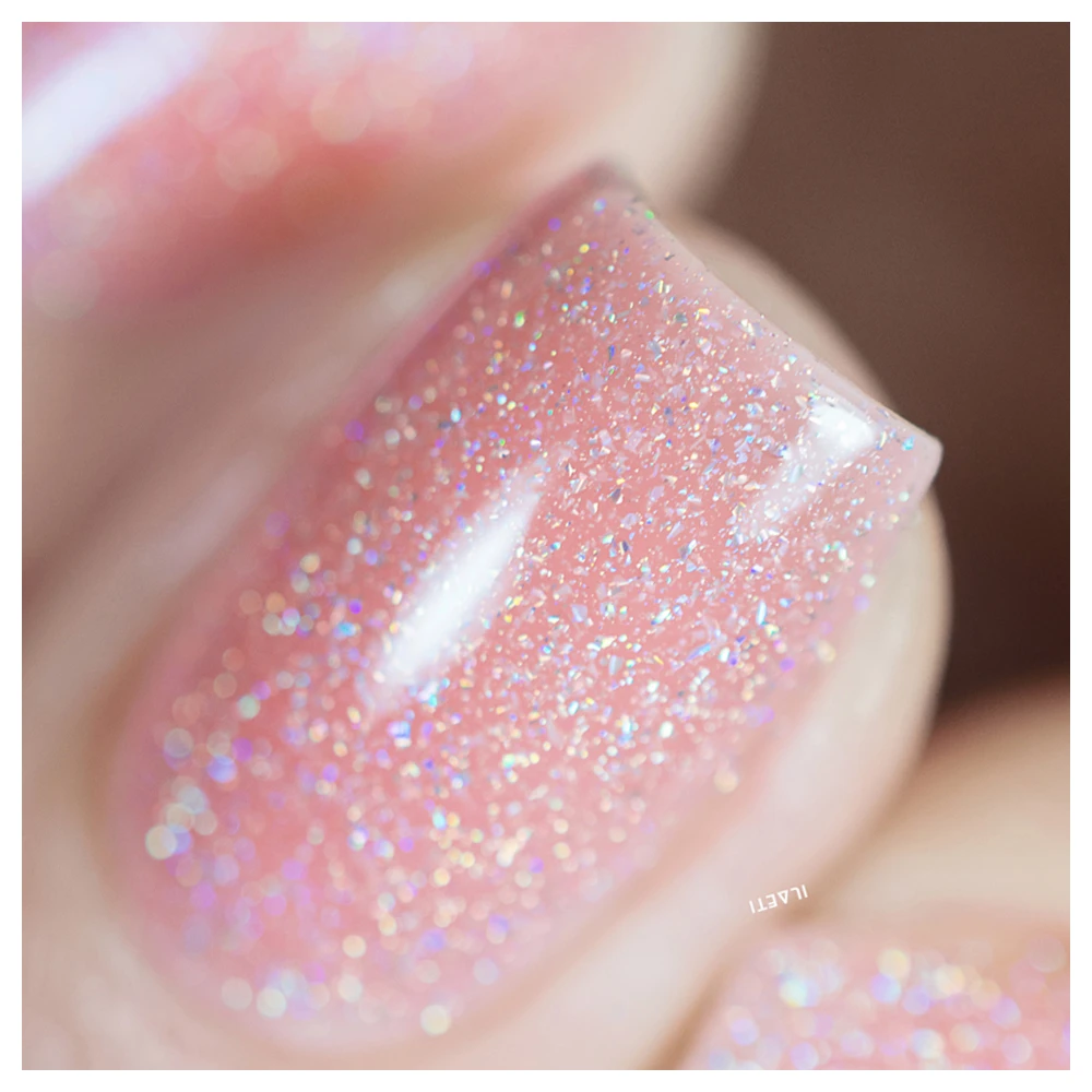 Easily built up or sandwiched, the sheer formula of our jellies make way for our scattered holographic micro-flakes to work their magic all the way through each layer right down to your nails! The end result is a super crisp and sparkly finish with unmistakable depth.