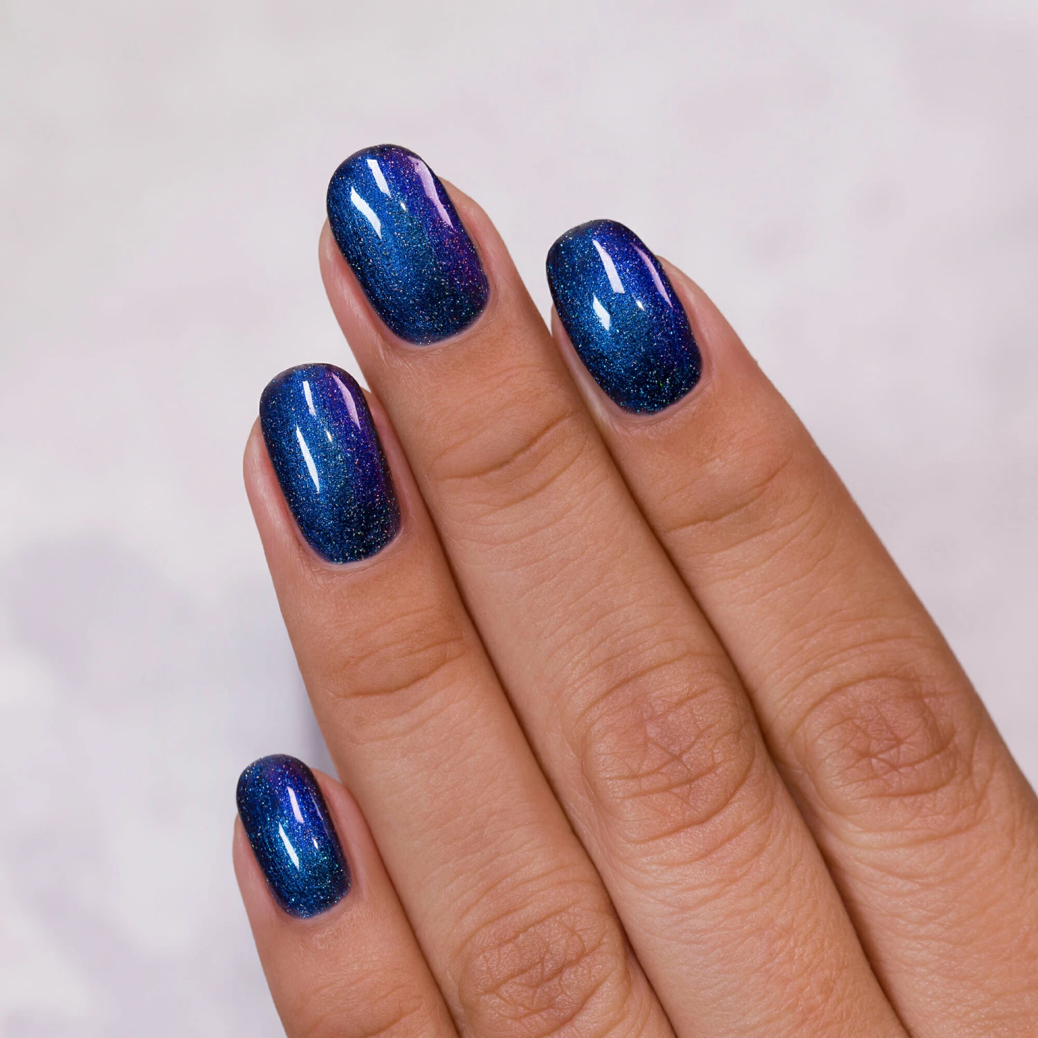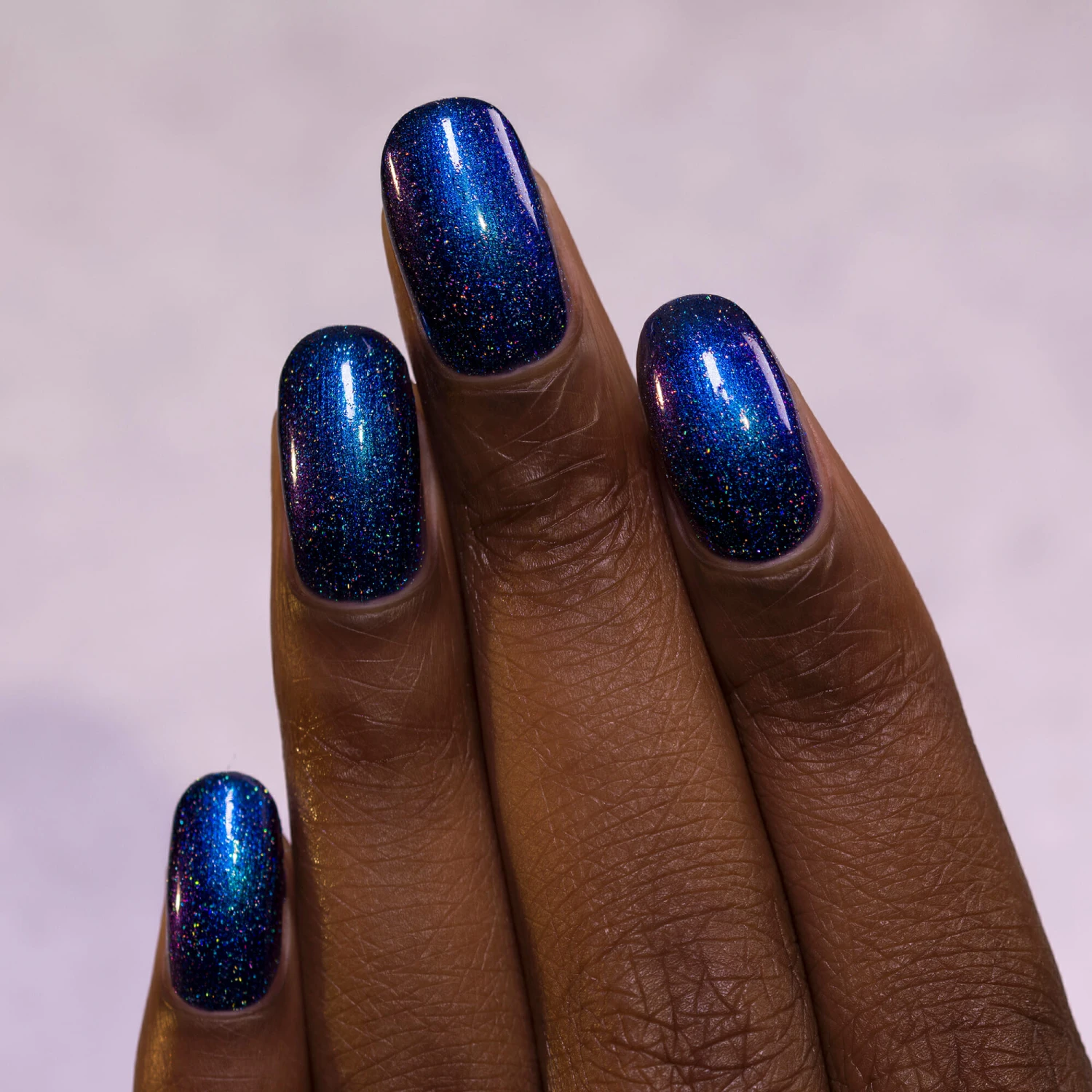 Unfazed features a gorgeous duo-chrome base that flips from blue to purple, even touching hints of red and gold in certain lighting!