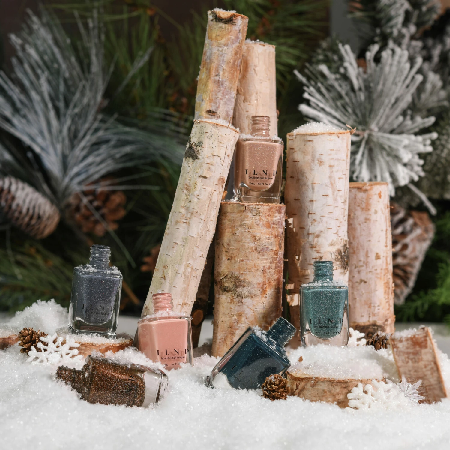 The Winter Resort Collection is a set of 6 creamy holographic formulas that take you on a friends’ winter getaway. Enjoy ski season year-round with colors reminiscent of knitted sweaters, log cabins, warm coffees, and twinkling snowflakes!