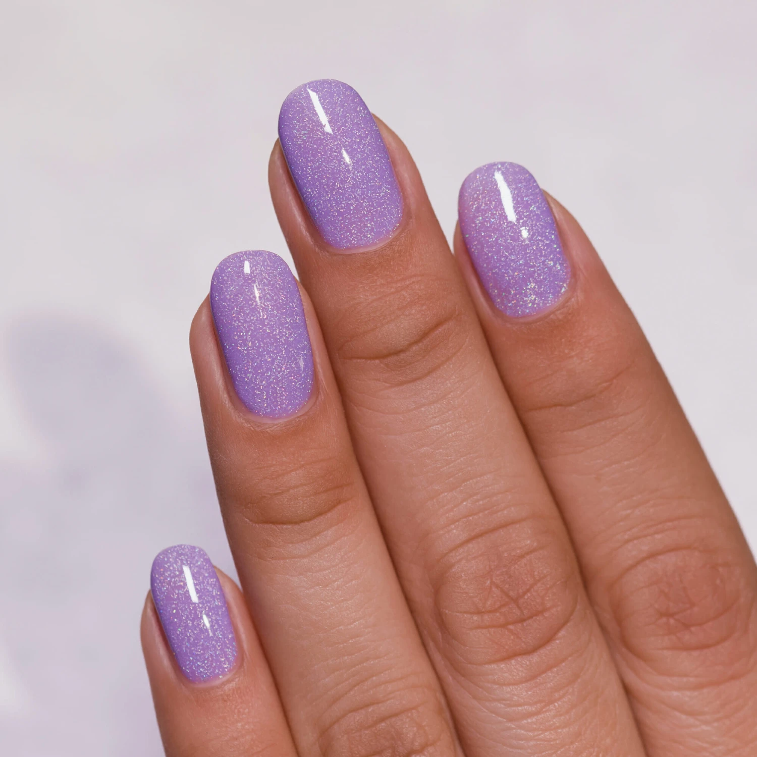Wrapped Up showcases a soft lavender holographic with a charming and creamy finish!